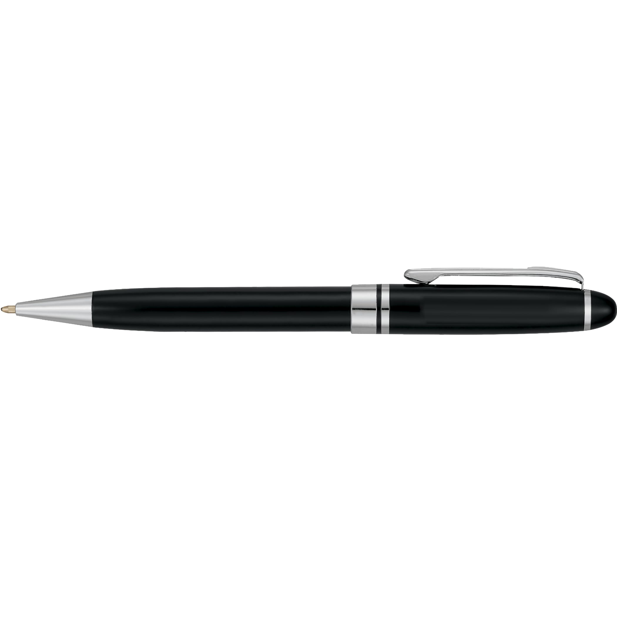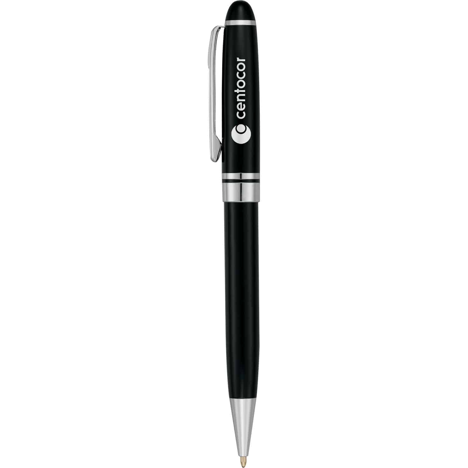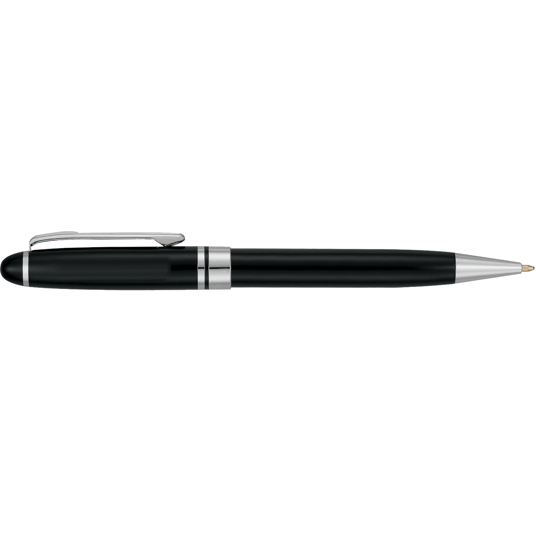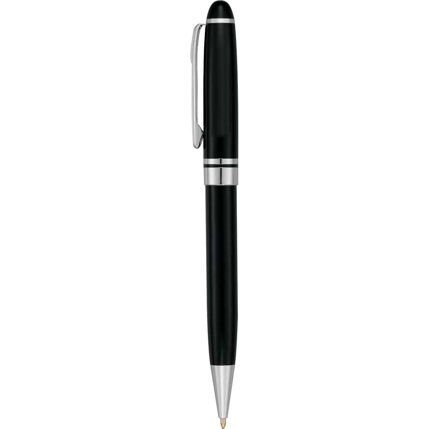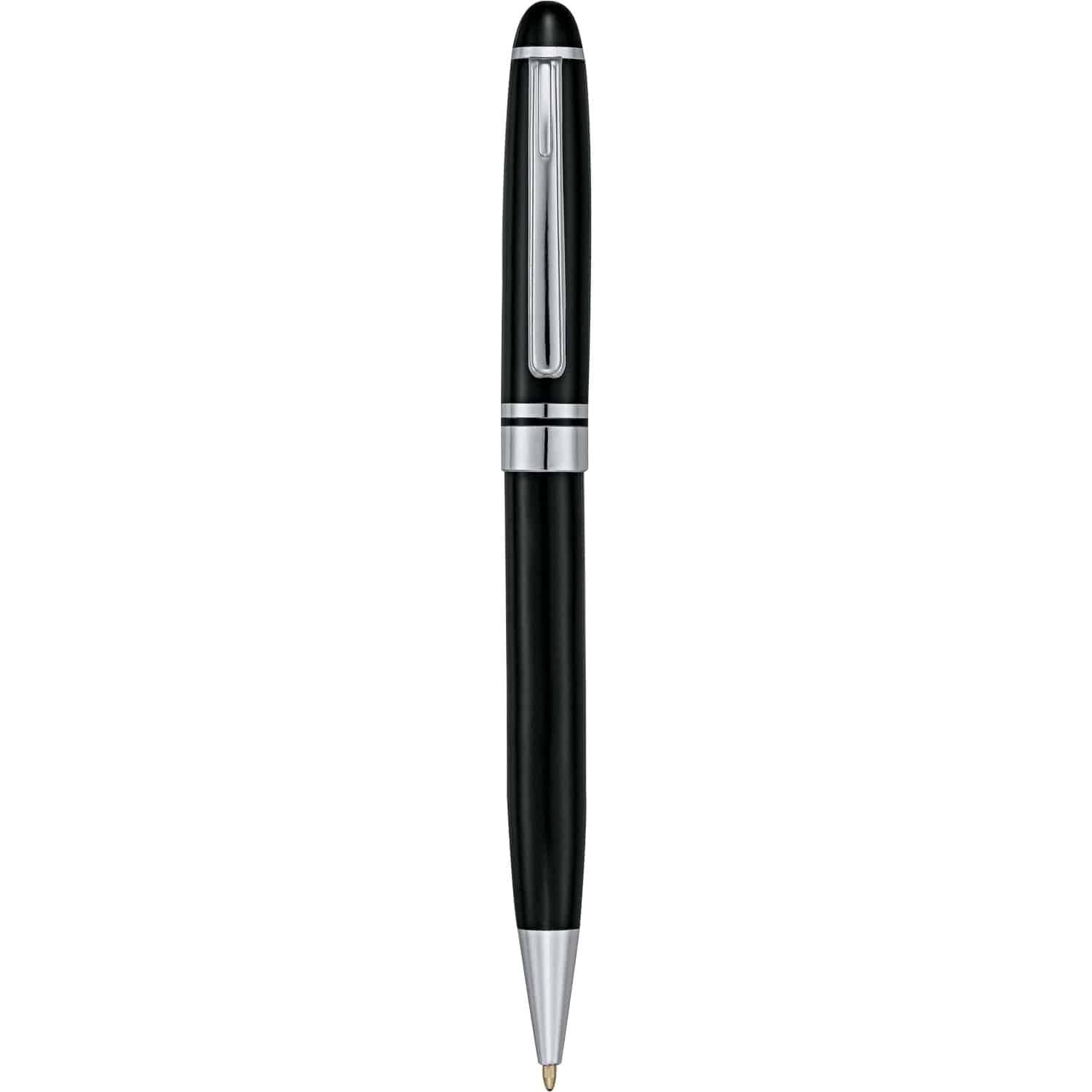 It’s a beautiful thing when classic meets corporate – and the Bristol Ballpoint is a perfect example. Choose between matte silver or high gloss black barrel styles, which are both accented with sleek chrome detailing. This brass twist-action ballpoint pen comes with a premium black ink cartridge so that you can begin writing immediately. 0.00″ D x 0.00″ W x 5.55″ H