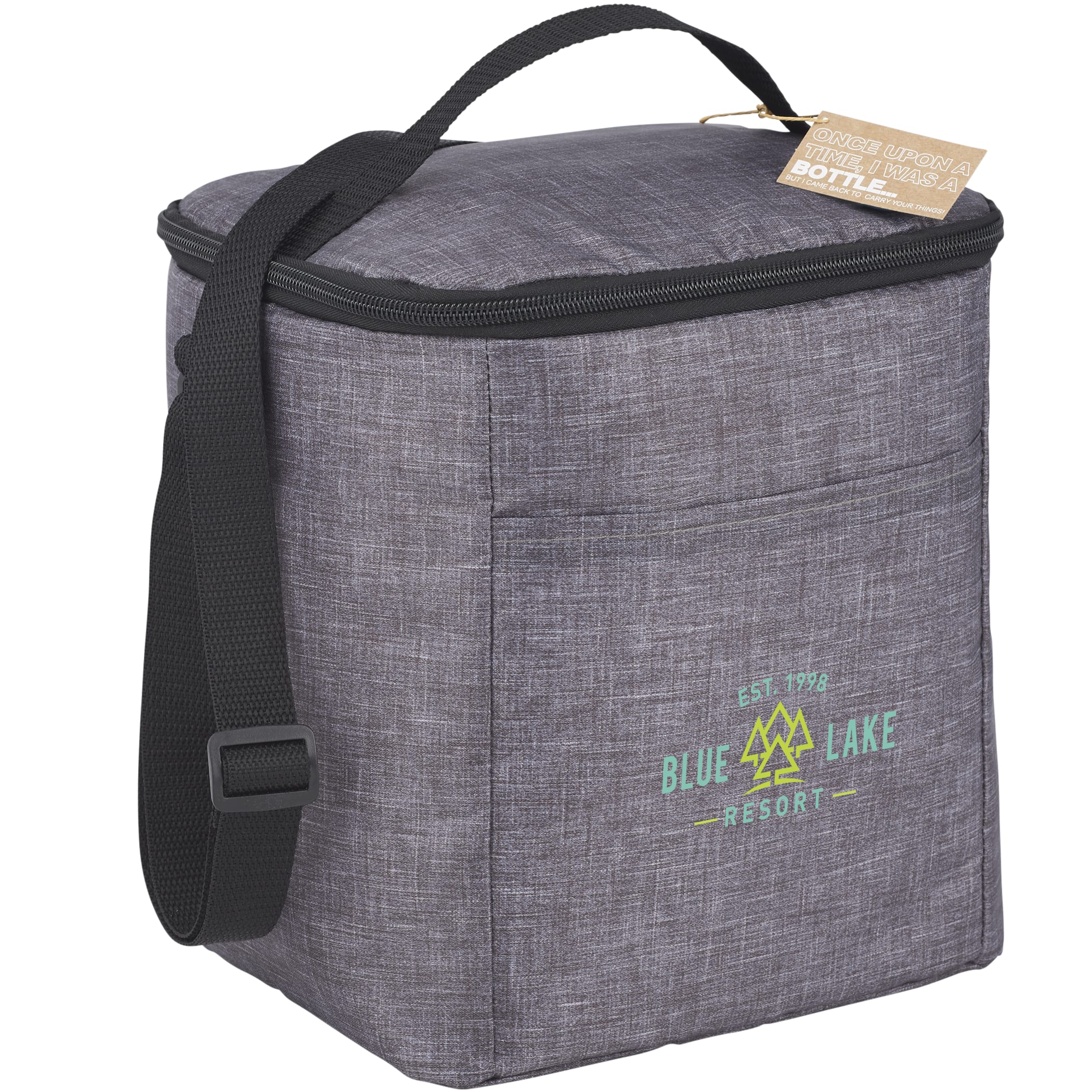 The Excursion Recycled 6 Can Lunch Cooler is stylish and ideally sized for anyone. Adjustable straps make it easy to carry, the front pocket provides easy access, and it has grey PEVA lining. Best of all: It’s made with recycled materials! 7.00″ D x 8.50″ W x 9.50″ H