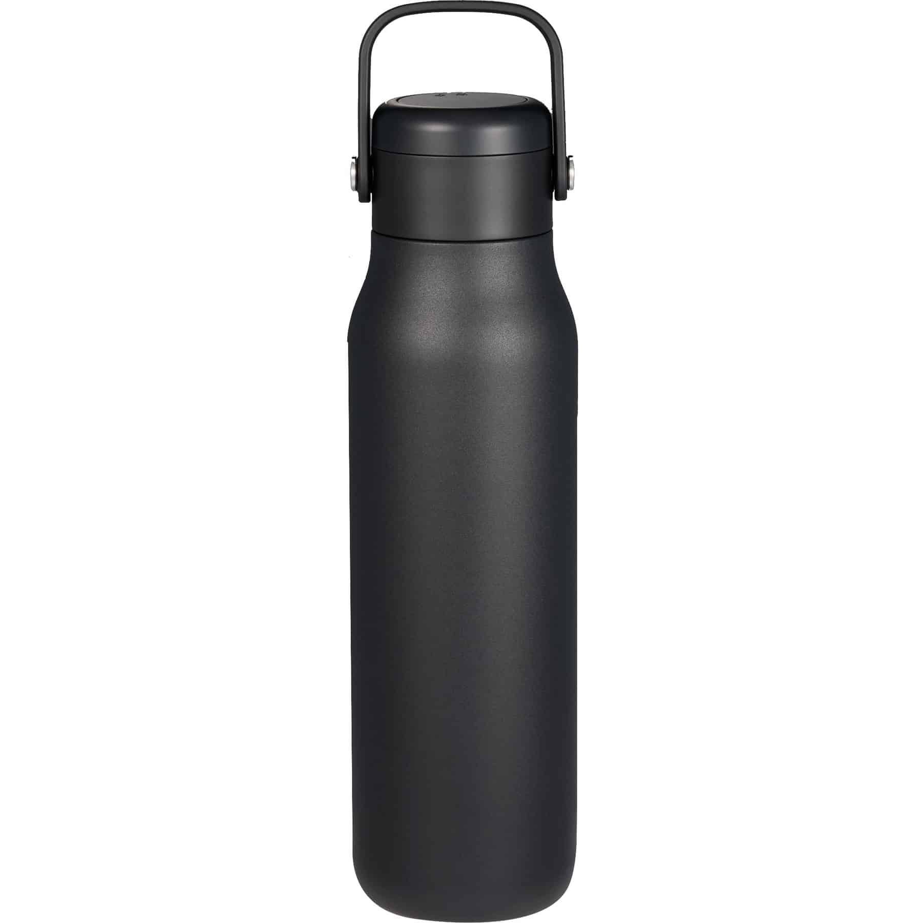 The Explorer 25oz Bottle features an one-touch suction push-button lid that allows you quickly remove the lid without unscrewing by pressing the top button. The lid is also leakproof with a lock feature, simply place the lid on the bottle, press top button to secure, and twist the lid to lock it. Constructed from 91% post-consumer recycled 18/8 stainless steel and additional recycled plastic components, this bottle delivers style and performance with an eco-conscious focus. The durable double-wall vacuum insulation with copper lining keeps beverages cold for up to 48 hours or hot for 12 hours and prevents condensation on the exterior. The wide opening allows for easy filling and pouring, perfect for adding ice cubes, and it fits most standard car cup holders. 25oz capacity. 3.07″ D x 3.07″ W x 10.83″ H