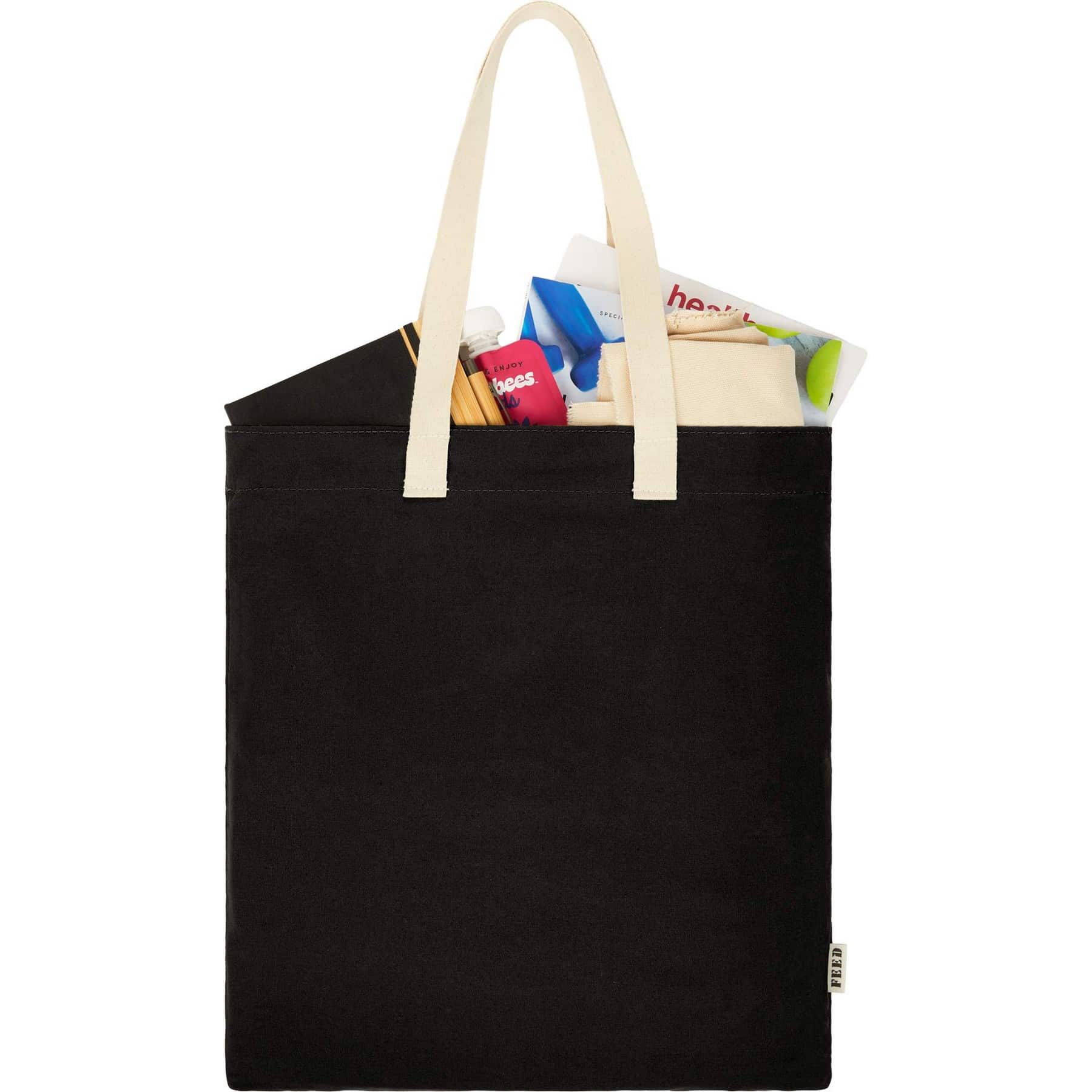 The FEED Organic Cotton Convention Tote does more than carry your stuff. It ends generational poverty. Proceeds from this tote helps provide 3 school meals for kids worldwide living with food insecurity. This convention tote features an open main compartment for easy access and durable handles with a 11” handle drop height and is made using 8oz. 100% GOTS Certified Organic cotton. Inside the tote you’ll find the iconic FEED giveback message screen-printed on the bag. Certified B Corp Partner. 0.50″ D x 15.00″ W x 16.50″ H