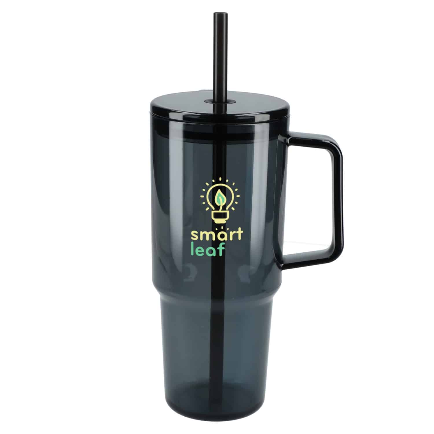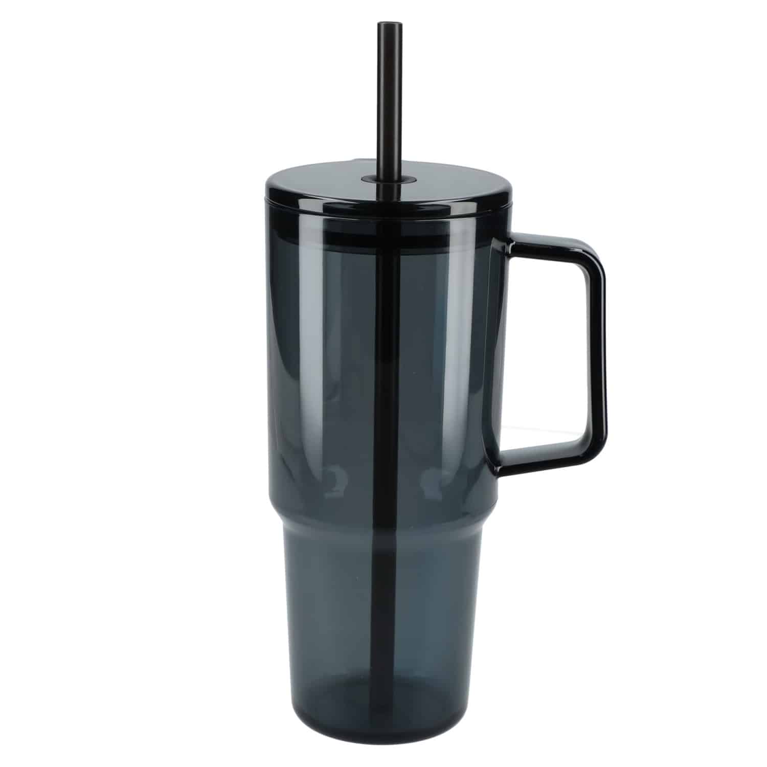 The Lucien Recycled Acrylic Travel Tumbler has a 40 oz capacity for fewer refills and features a slim base that fits into most cup holders, comfortable carry handle, and splash-proof press-on lid with a silicone gasket to secure the straw in place. The translucent, color-matching straw and lid are sure to turn heads wherever you take this tumbler. This eco-friendly straw tumbler is crafted from 100% recycled Acrylic (SAN) with a 100% recycled Acrylic (SAN) lid and 100% recycled polypropylene (rPP) straw. Hand-wash only.Straws are included, but not inserted. 4.09″ D x 5.59″ W x 9.09″ H
