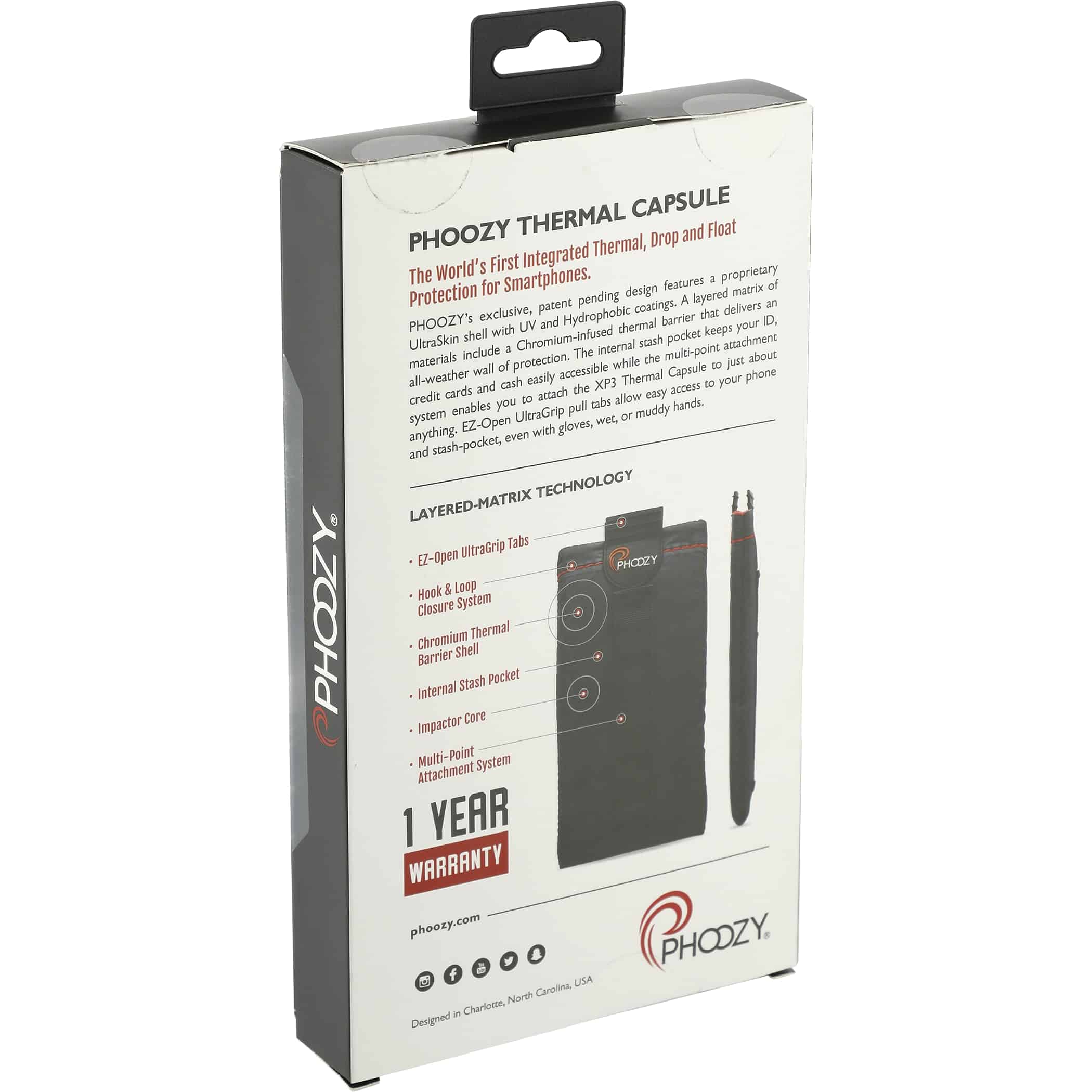 Keep your smartphone safe with the PHOOZY XP3. As seen on Shark Tank, this durable case is packed full of features like multiple attachment points that let you quickly and easily clip it to a bag and go. An internal stash pocket is made for your cards and cash, so you can say goodbye to bulky wallets. The material of the Phoozy XPS is derived from NASA spacesuit technology, reflecting more than 90% of the sun’s heat to prevent overheating and permanent damage to your device while also insulating your device in cold conditions to extend battery life up to 4X (compared to not using a PHOOZY). The interior dimensions of the Phoozy are 6.75” x 0.40” x 3.6”, making it compatible with iPhone 8+/XR/XSMax/11/11ProMax/12ProMax /13Pro/13ProMax, Galaxy S9+/S10+/S20+/S20Ultra/ZFold/A71, Note 9/10/20, Pixel 2XL/3XL/4XL and most large phones. 0.40″ D x 3.60″ W x 6.75″ H